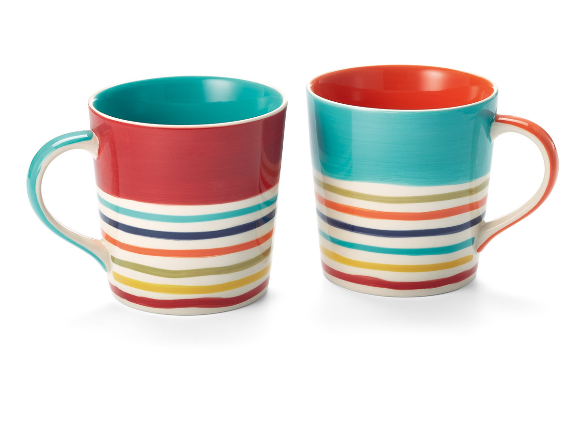 A Tinka Cup egy nagy (400 ml) kerámia bögre, élénk színű csíkokkal és merész színekkel a belsejében.
