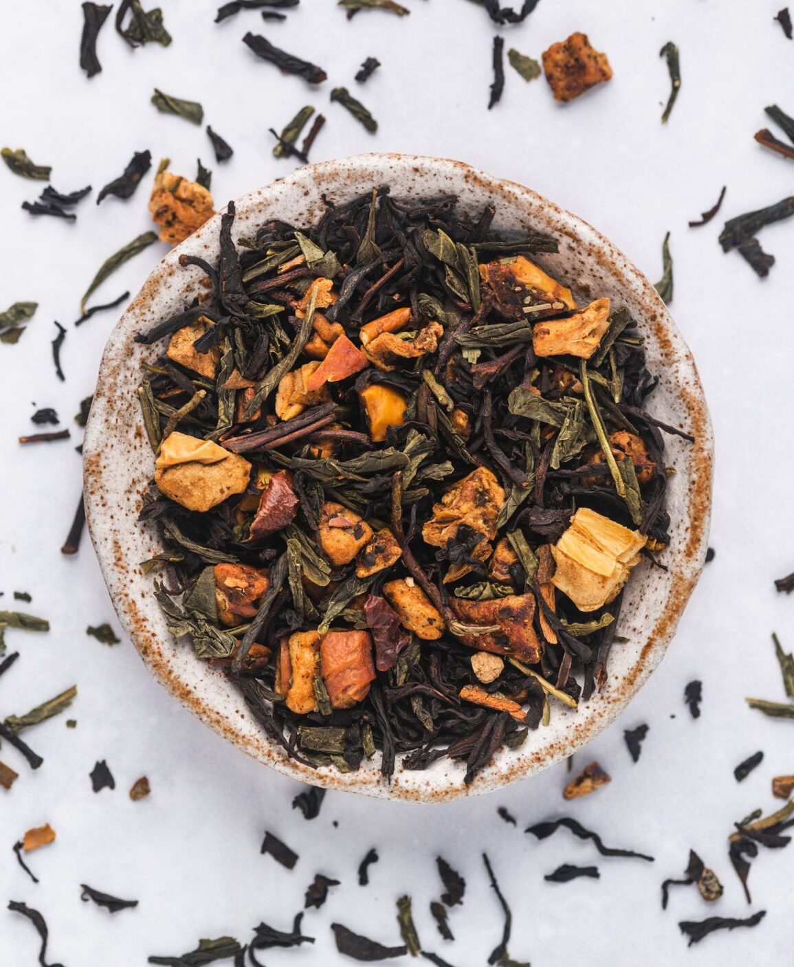 Összetevők: Indiai-ceyloni-kínai fekete és zöld teakeverék almával, fahéjdarabokkal és fűszeres aromával.